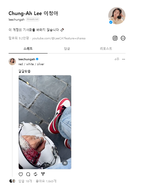 배우 이청아의 쓰레드 팔로워수는 9.2만 명입니다.