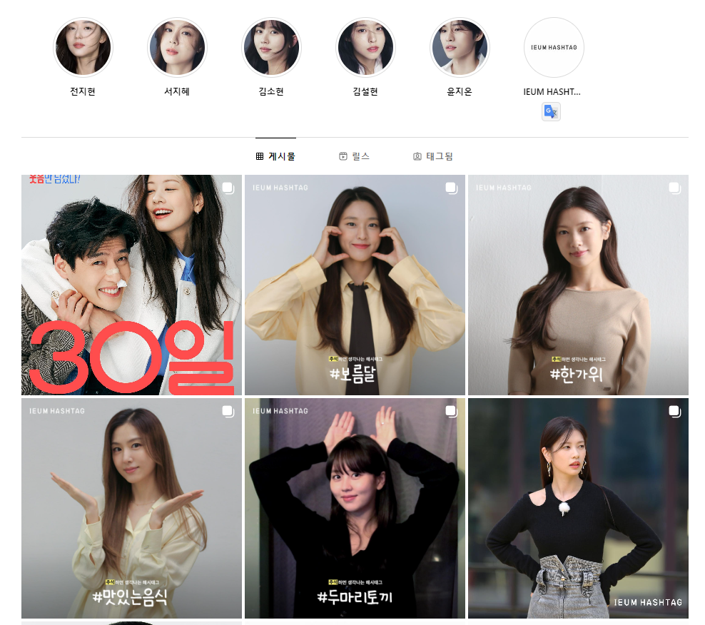 1) 소속사 이음해시태그