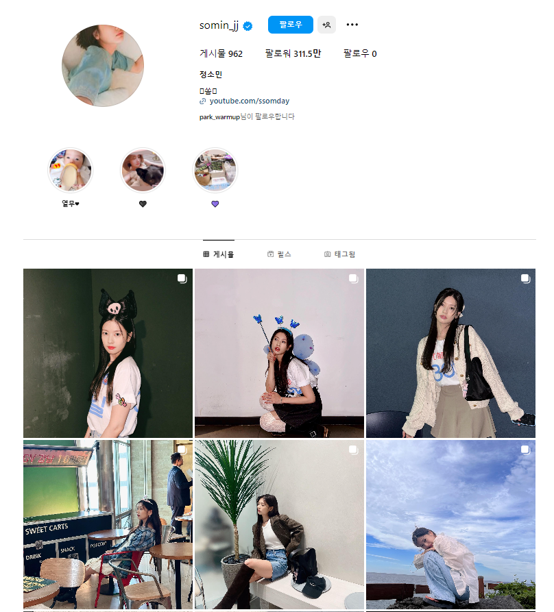 3. 정소민 인스타그램, 유튜브, 팬카페 주소